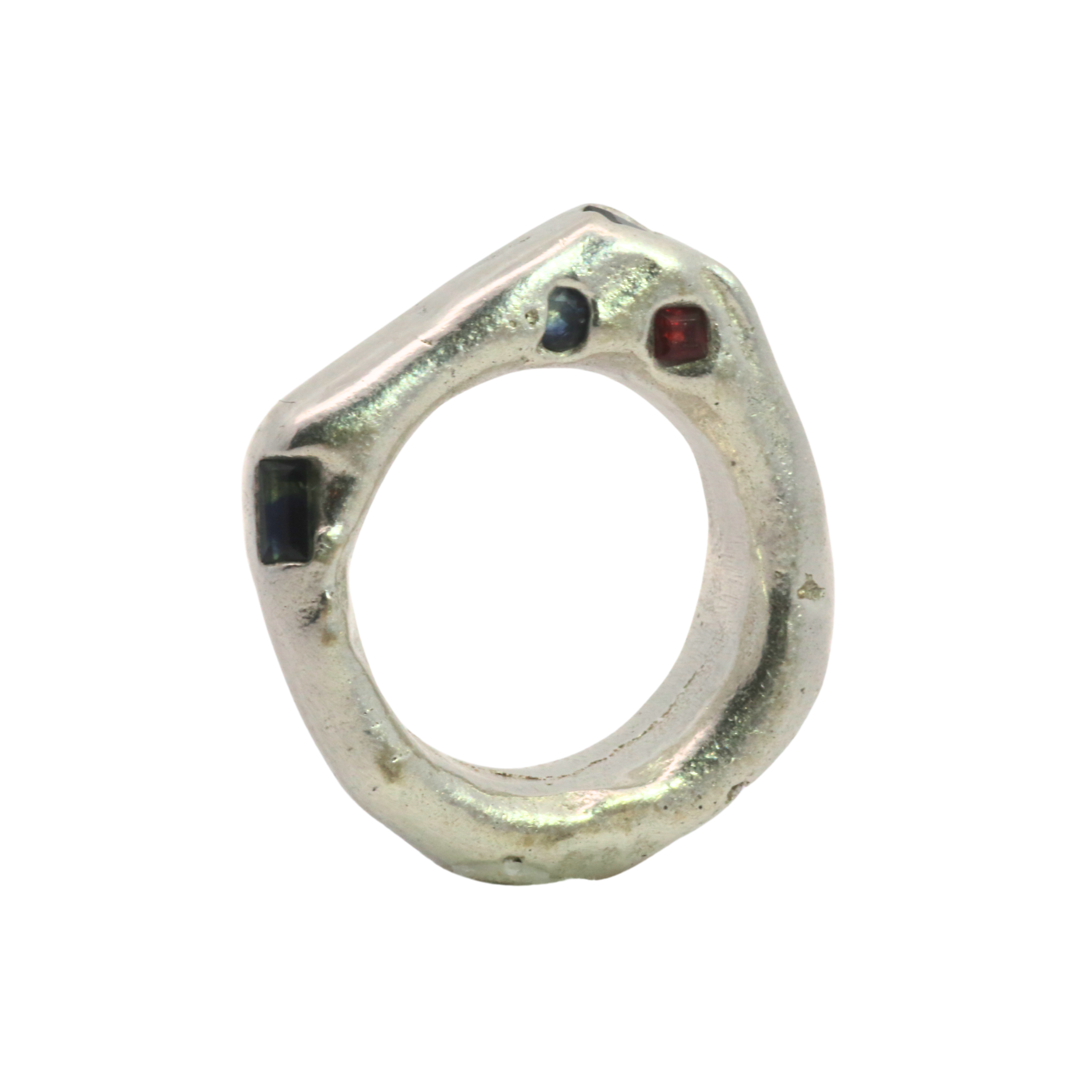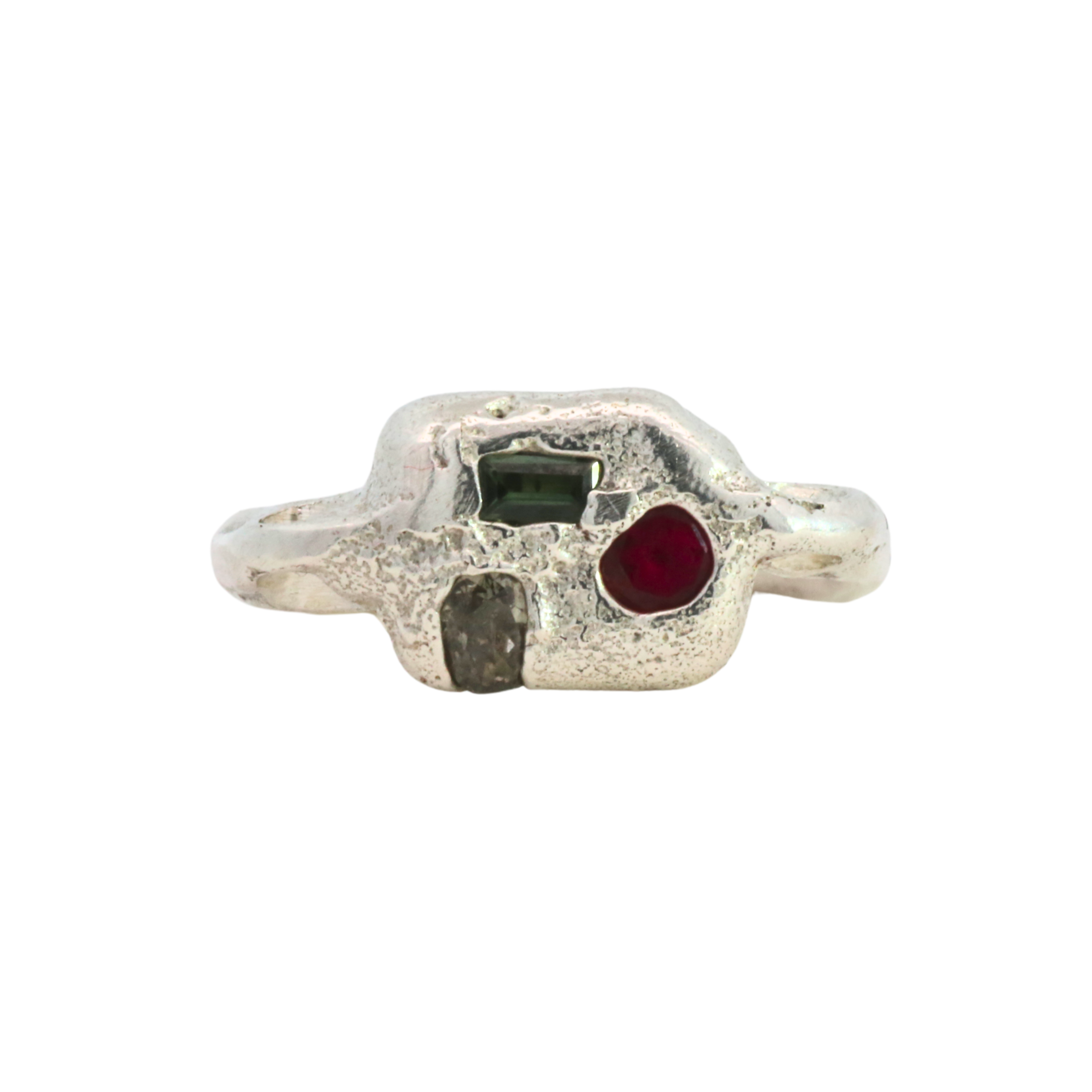 WILDER Ring - Sapphire + Raw Diamond - Sterling Silver