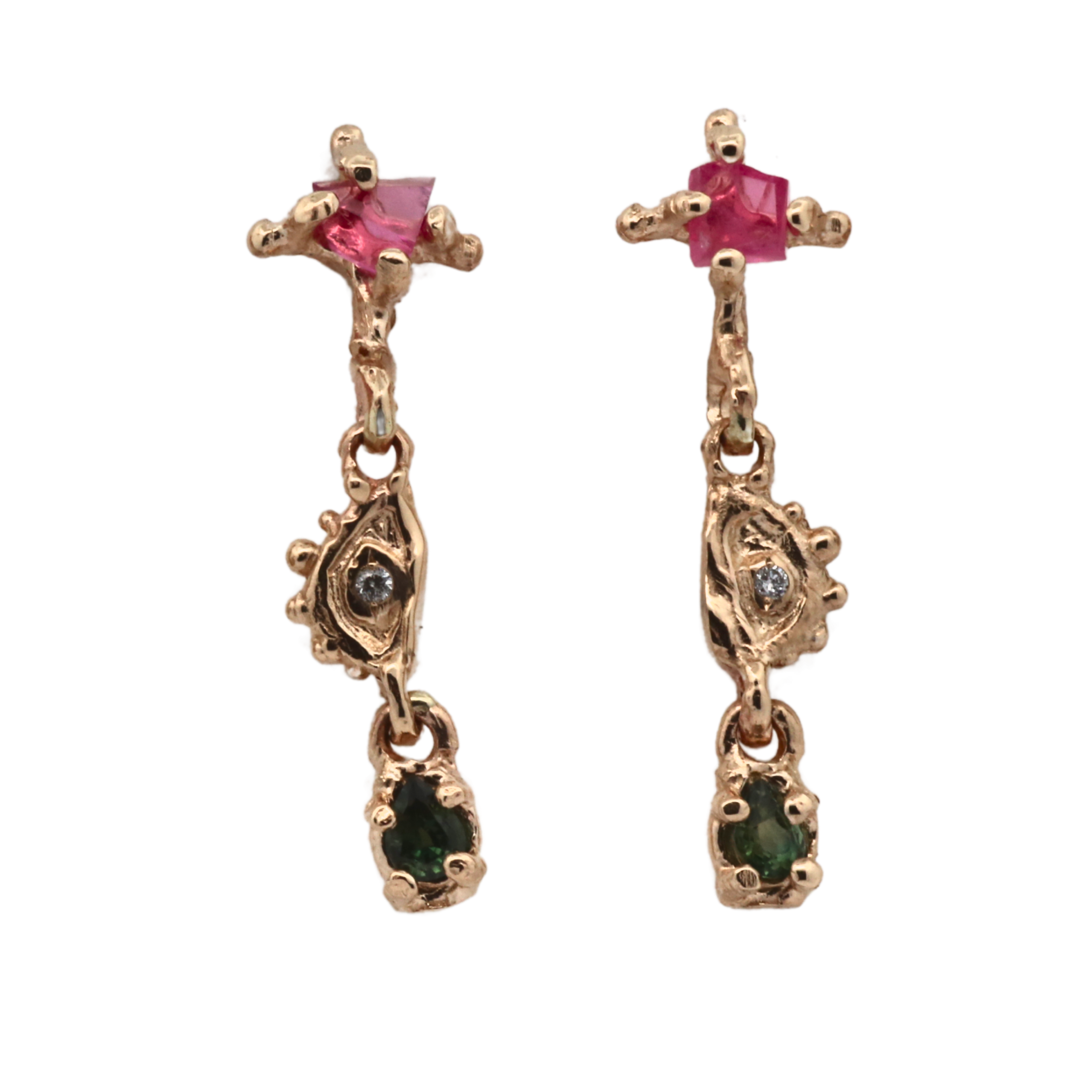 EYES No. 3 Earrings - Pink Spinel, Sapphire, Diamond - Single or Pair