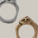 This collection of sand cast statement rings embraces the weight of metal and is solid sterling silver weighing approximately 17 grams. These rings are weighty and playful wearable sculptures, raw and unrefined, yet polished enough to evoke the coveted patina of time.