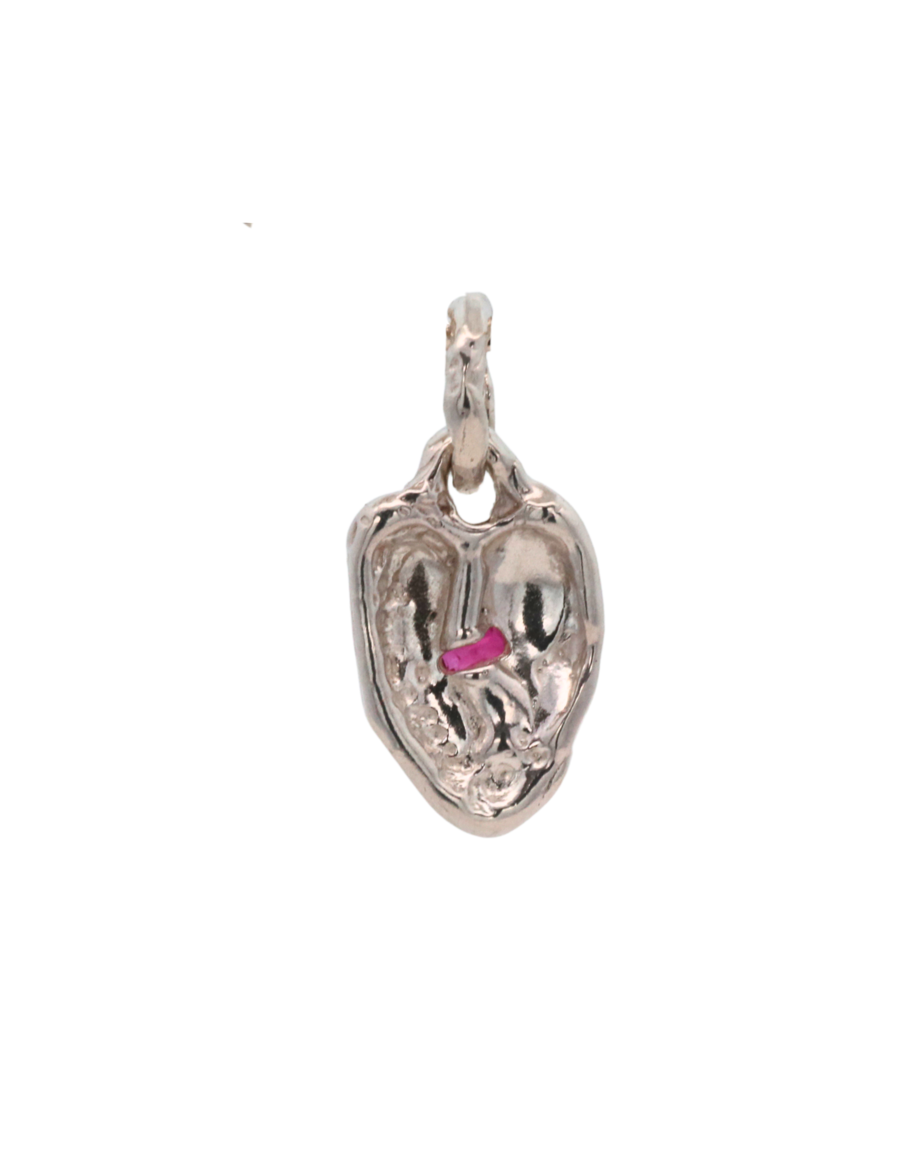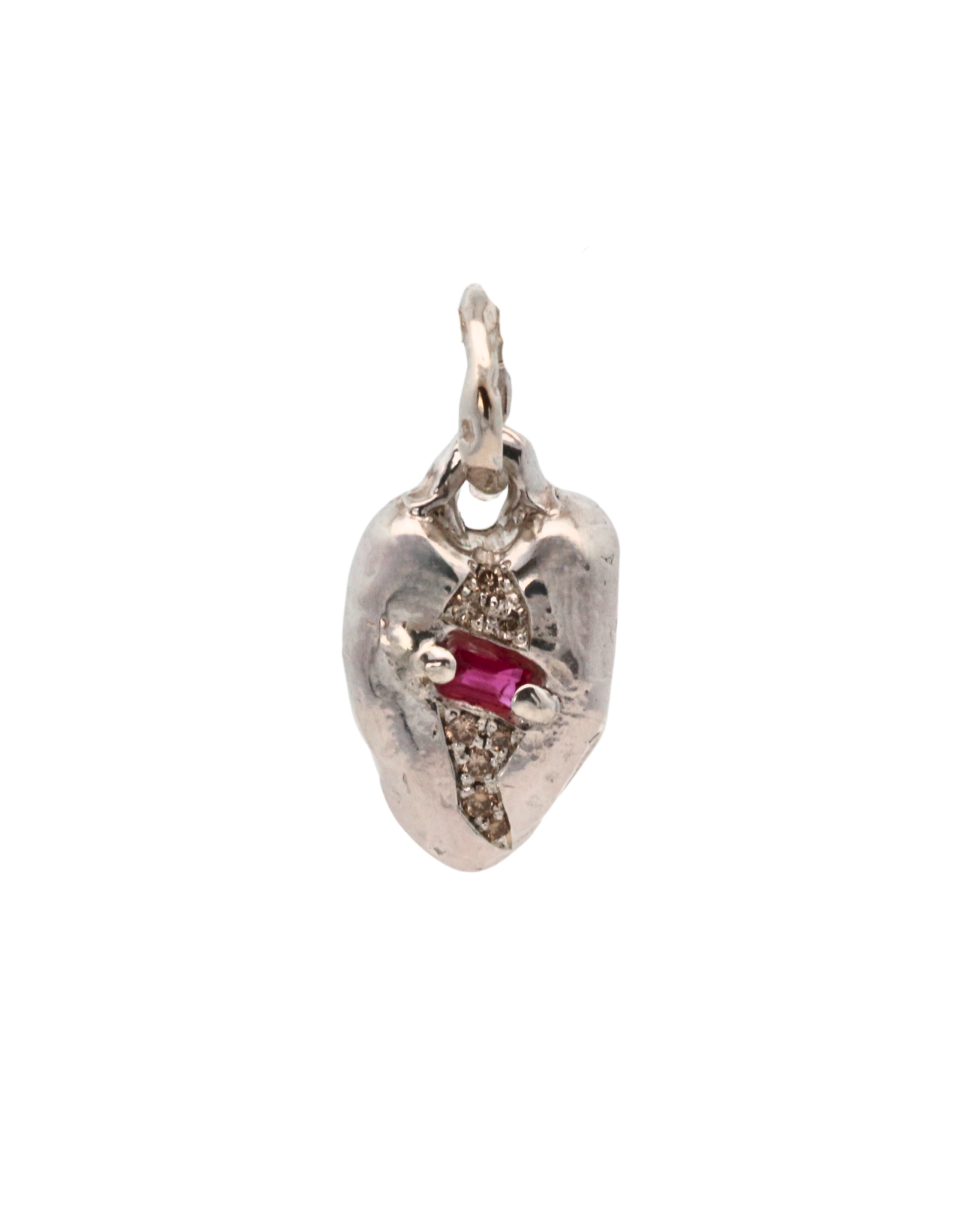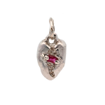 Heart Pendant Charm - Sterling Silver, Ruby + Diamonds