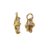 The beauty of this charm pair is beyond. Handcut rainbow lattice quartz selected from my 2025 trip to Tuscon Gem Show. These stones come from a backyard mine in Australia, the couple mines and cuts the stones themselves. I afforded 7 of these gems, totally captivated by their lustrous rainbow and speckled inclusions. They are breathtaking.