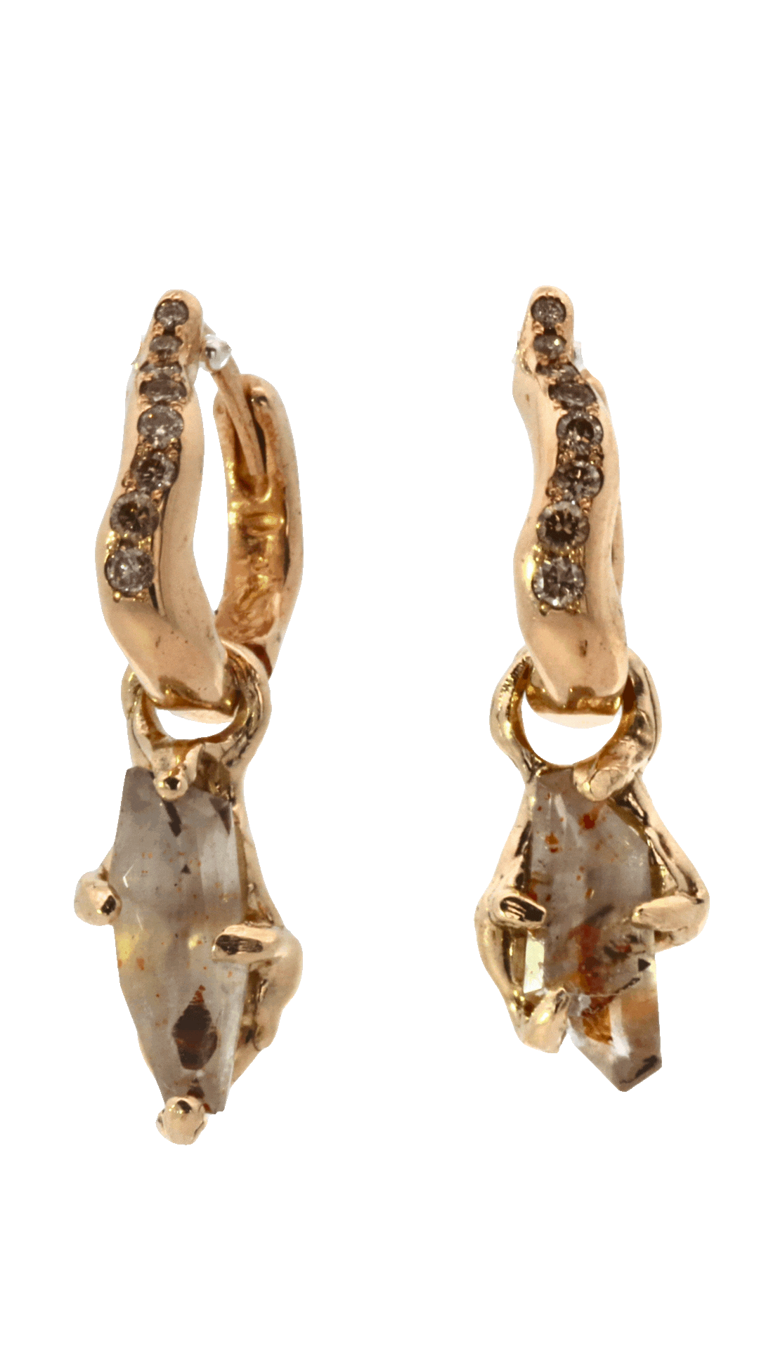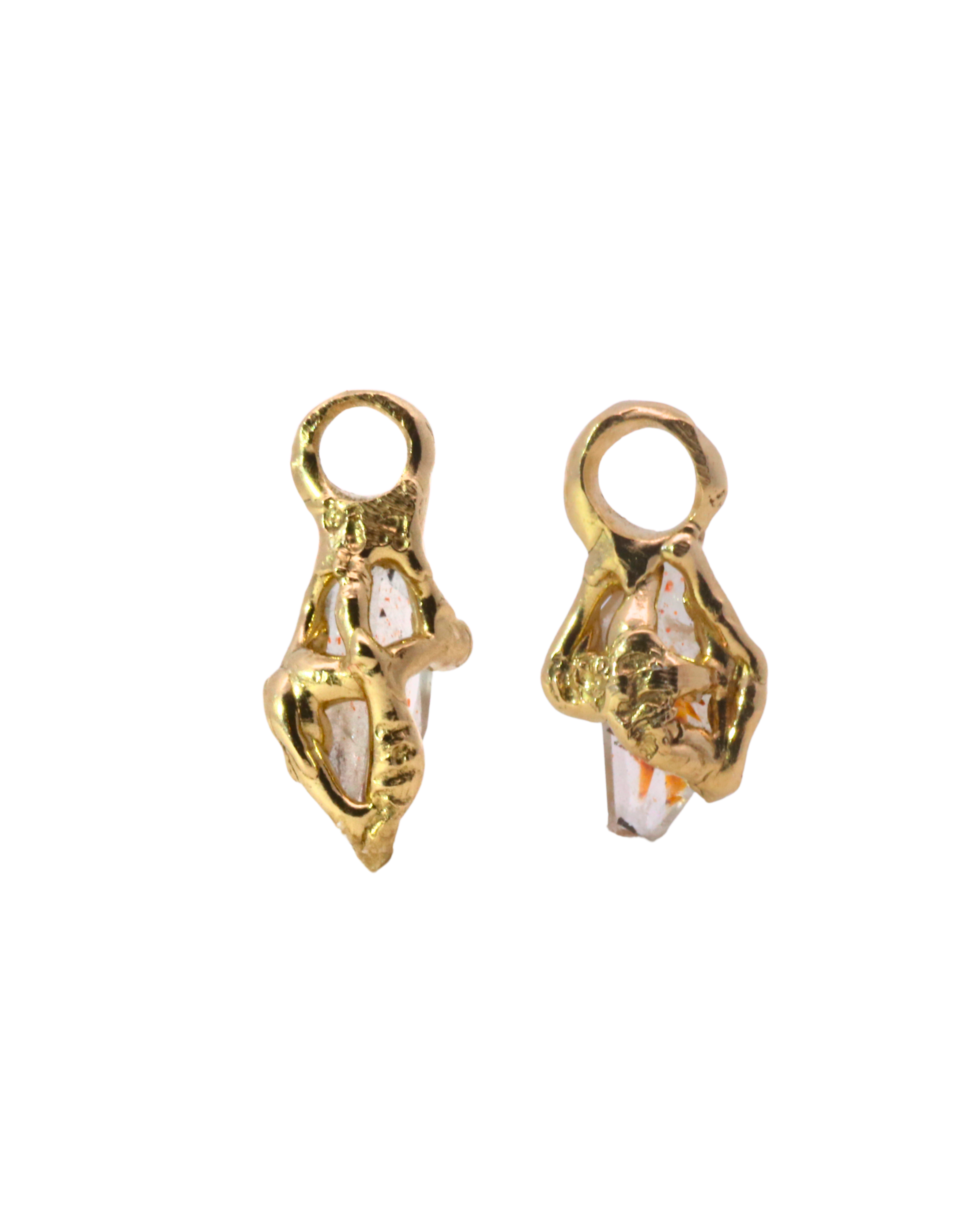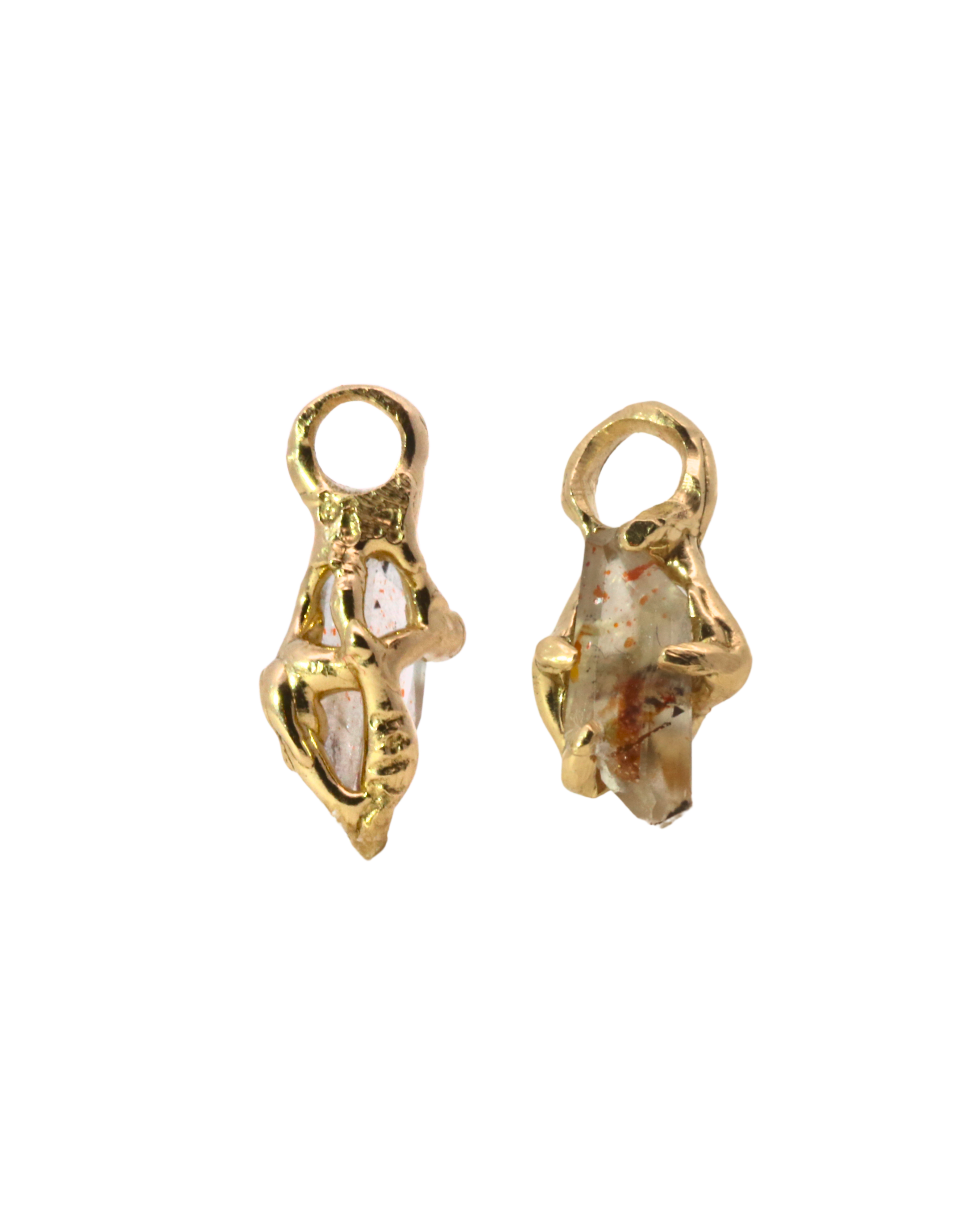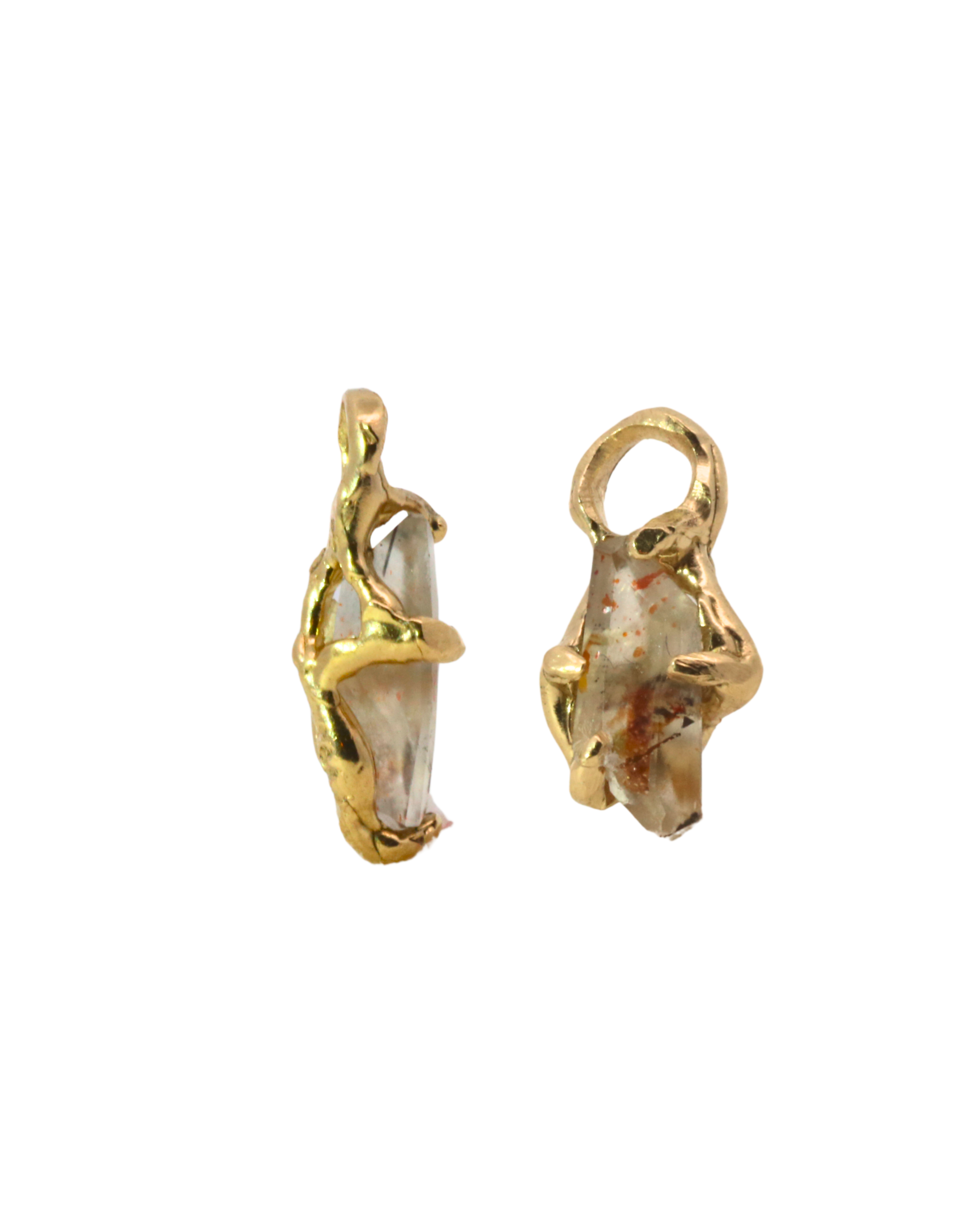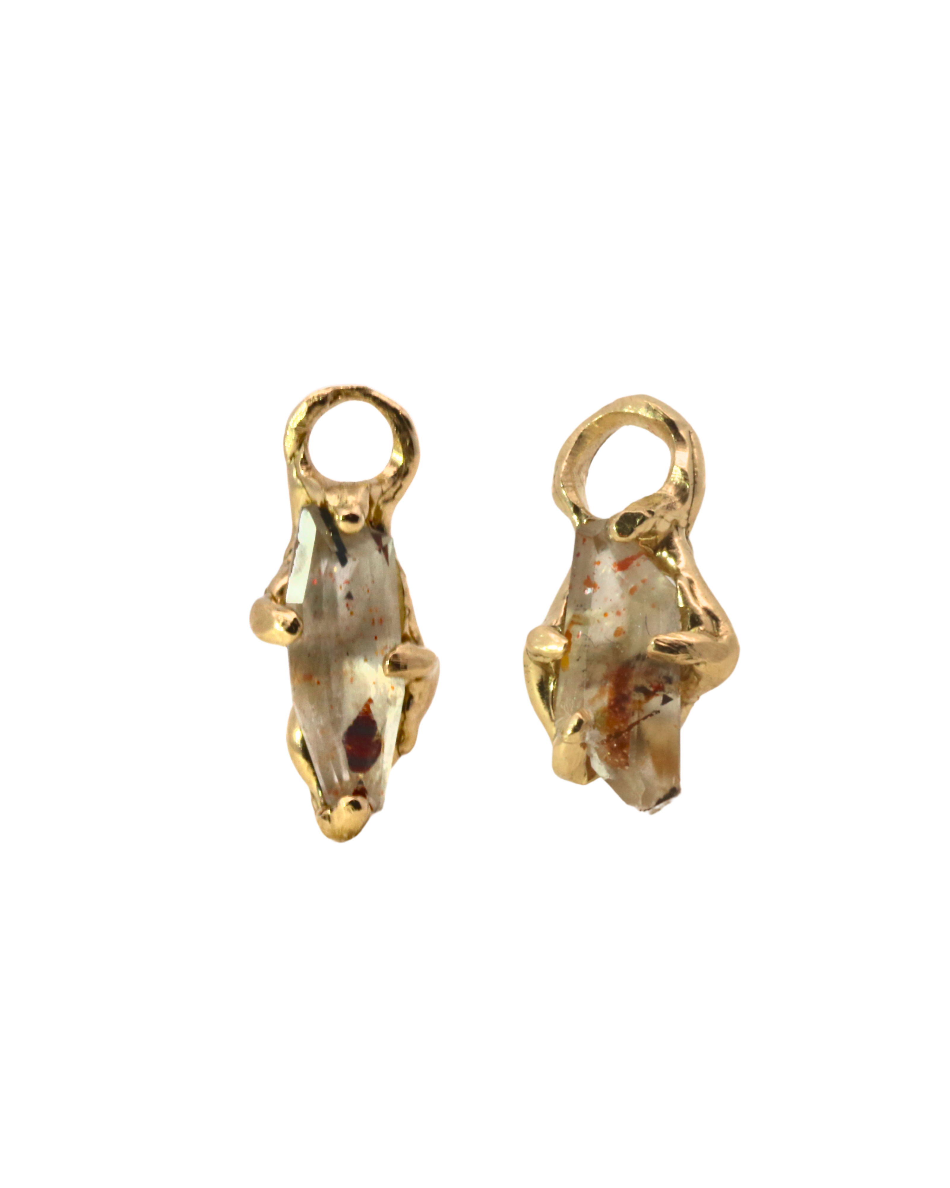 No.90 OOAK Hoop Charms Pair - Rainbow Lattice Quartz + 14K Gold