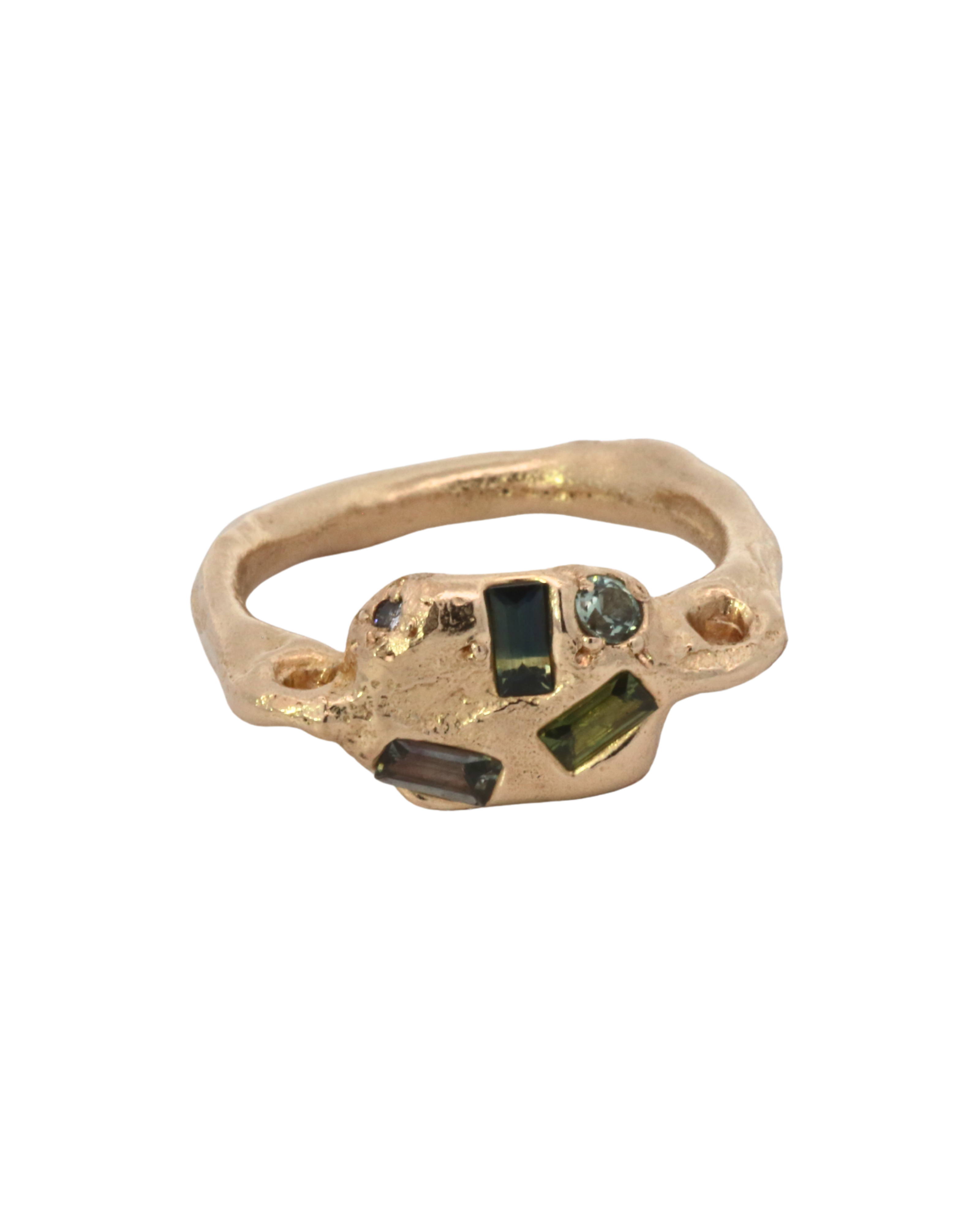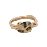 Seb has moves, round and square and shaped like an ancient vessel, because we pour it on thick. Because, not dainty. A ring designed for pinky, self love and expression - sand casted with substance, stones in place, no two are completely alike.