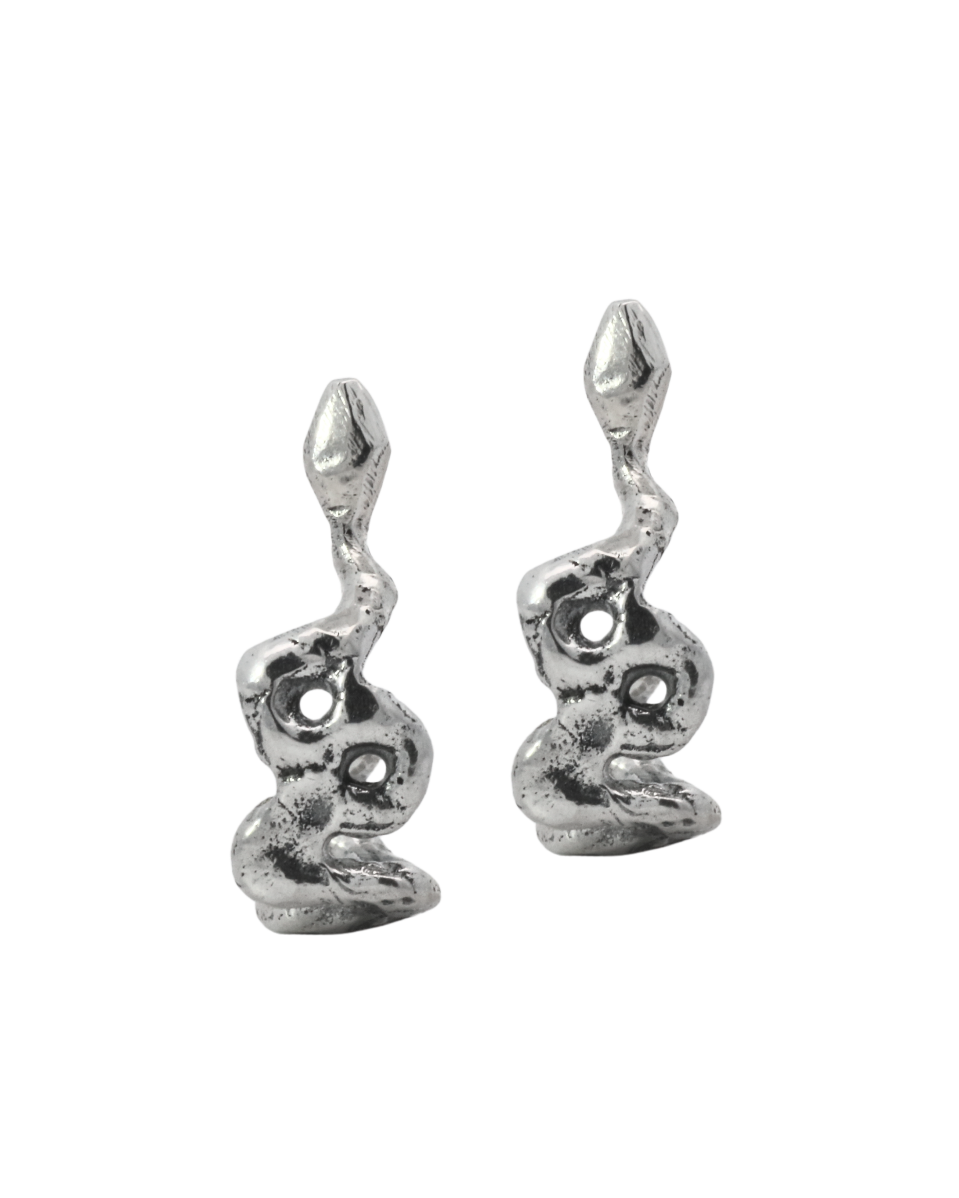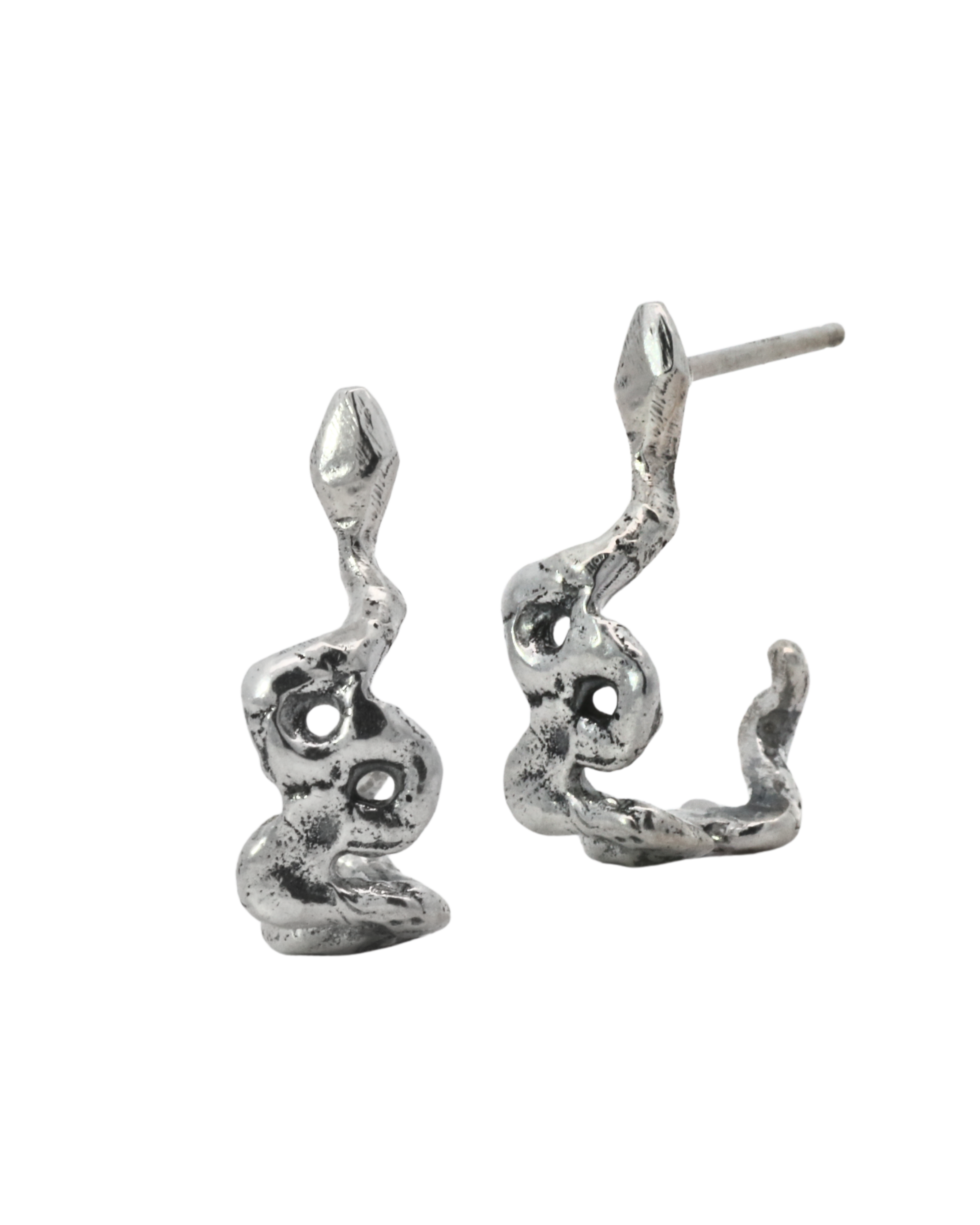 Wiggly snake hoop earrings. Hand carved and lost wax cast in recycled sterling silver.