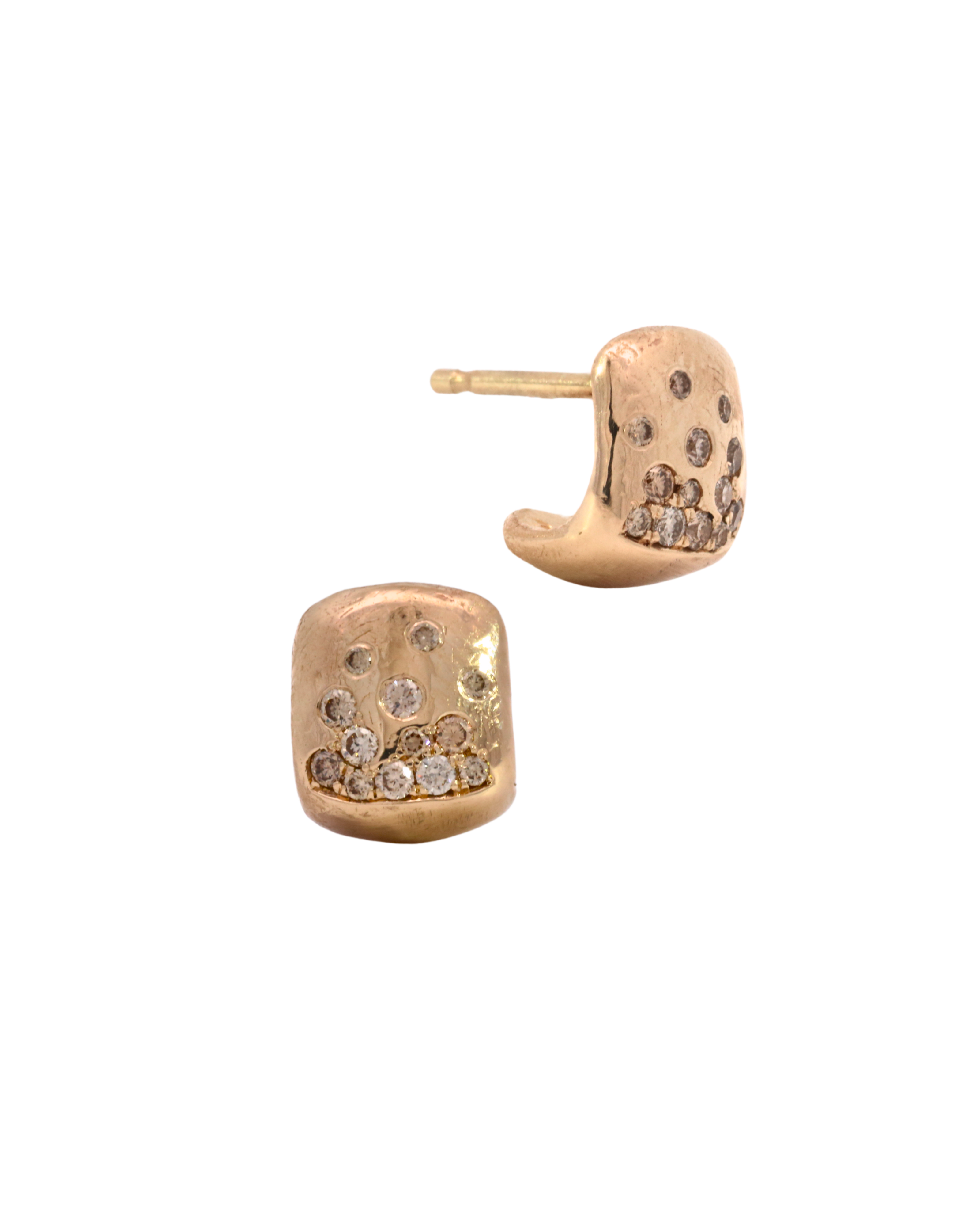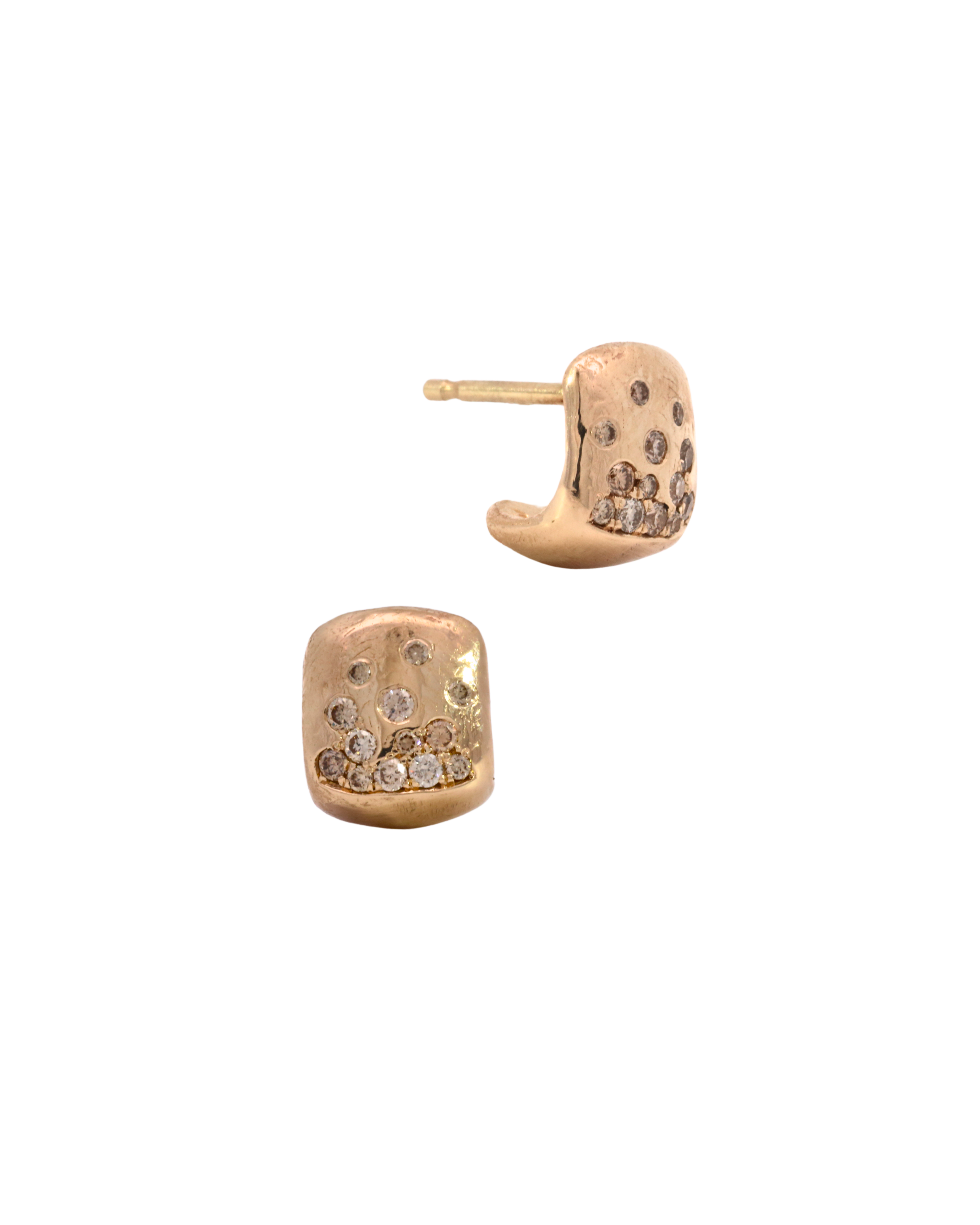 Small little boxy half-hoop earrings with scattered champagne diamond pavé.